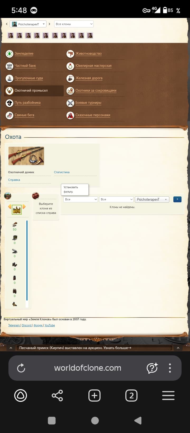 Фильтры не работают в охотничьем промысле, купил клону ружья, хотел поохотится на одном клоне есть охотничий билет, только вот фильтры не работают, выбираю нужного клона не выдает по фильтрам в итоге просто так накупил ружей, даже на охоту не могу отправится, что бы не ставил в фильтрах показывает одно клона с охотничим билетом и пофиг что я выбираю нужного мне клона, исправьте фильтры не работают