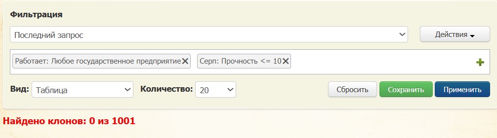 Если общий фильтр выкинет сотню клонов, у которых завтра инструмент заканчивается, но без указания какой именно - лучше будет??? сделали 12 фильтров для госовиков и 4 для ЧП и вся информация под рукой…