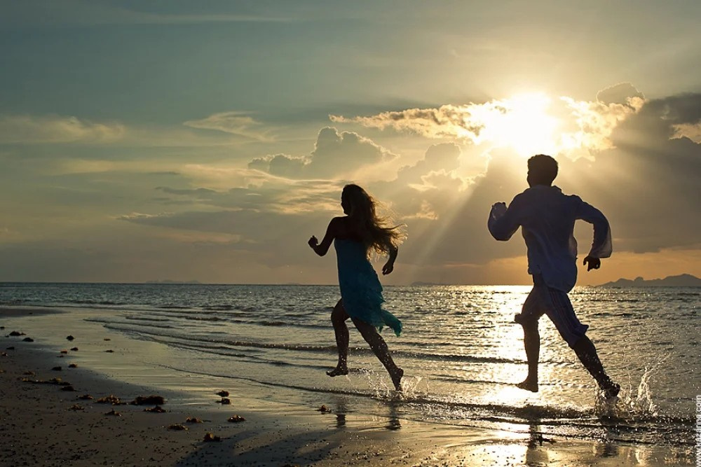 Побежали по берегу, так, чтобы вода была по щиколотки…