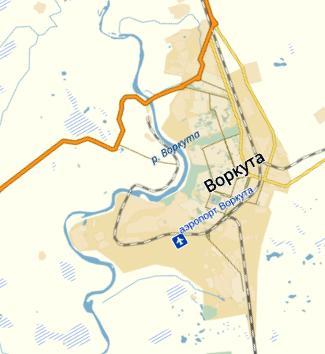 Вот какие очертания города Воркута можно найти на популярном Интернет-ресурсе Яндекс.Карты: