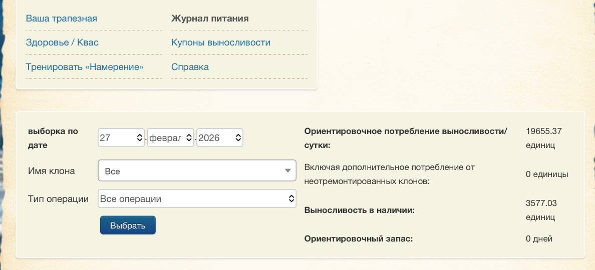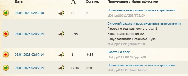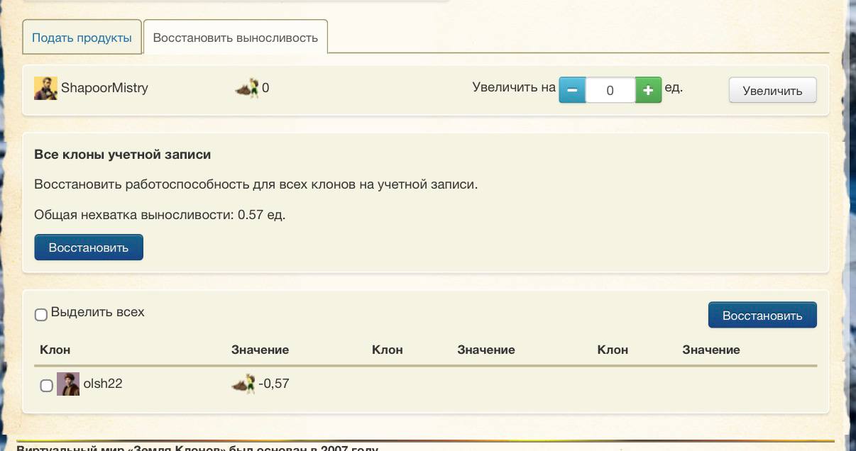 @Root И если это не ошибка или конфликт (как я его называю), то как так выходит, что появляются клоны с отрицательной выносливостью, при наличии в трапезной как минимум больше, чем расход в сутки всего аккаунта.