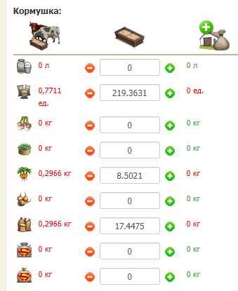 Я что-то запамятовал, в левой части должно быть указано ежедневное потребление кормов, ну т.е. сколько коровки съели все вместе? А то слева все по нулям