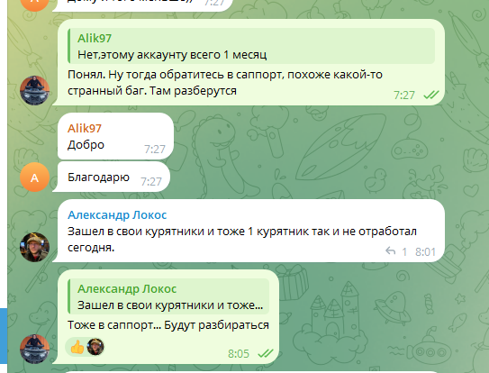 Сегодня не сработал курятник. Все остальные курятники сработали штатно, а этот вообще никак.