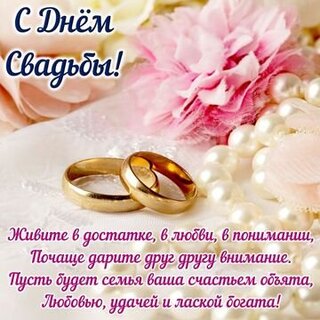 Дорогие молодожены, сегодня вы стали еще счастливее, ведь ваша любовь, ваши отношения перешли на новый уровень: теперь вы не просто влюбленная пара, отныне вы новоиспеченная семья! Желаю вашей семье море радостей, совместных успехов и неиссякаемой любви! Будьте друг для друга опорой и поддержкой! Пускай в вашем доме всегда будут господствовать мир, тепло, уют и достаток! Всех благ вам, молодые!