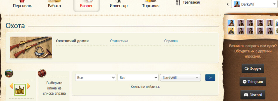 Подскажите пожалуйста! Одного клона зарядил на охоту куницы. Но остальные клоны не отображаются, Хотел купить еще одну лицензию на кабана купцом, но увы. Это баг или одним клоном только можно охотиться?