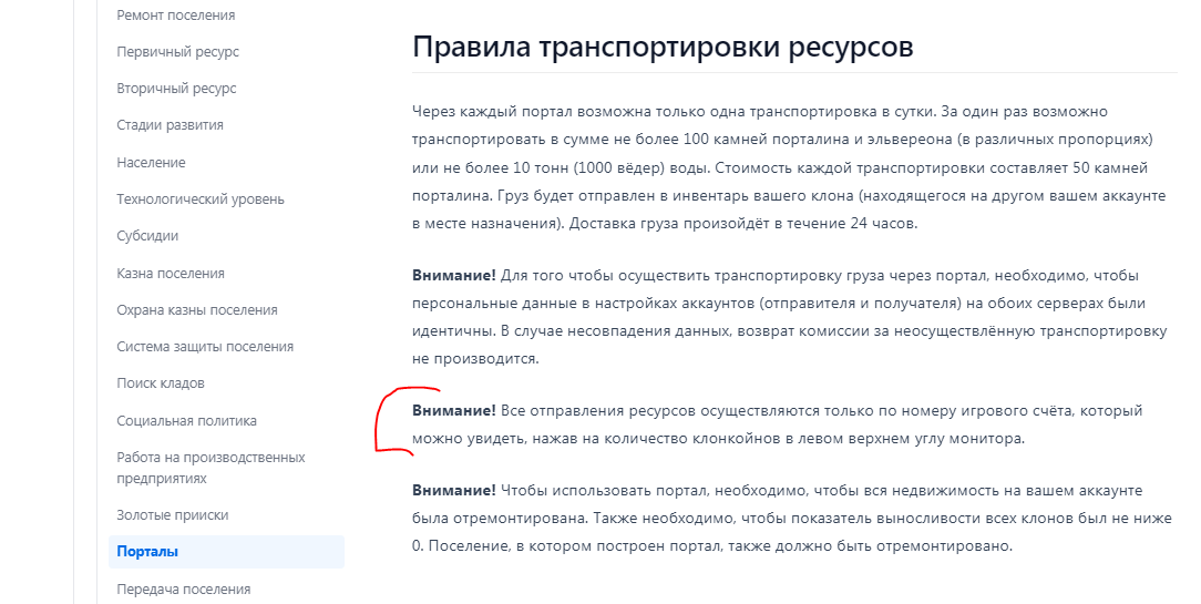- Сегодня арендовал портал. Делал это первый раз. Делаю отправление, все вроде бы интуитивно понятно, но там есть поле “введите номер счета”. Обычно используешь просто имя клона и я ввожу его, помечает красным, понимаю, что не то. Иду в справку, а там ничего нет, что это за номер и где его взять. Хорошо, что ребята в чате подсказали оперативно. Считаю, что некоторые процессы в игре желательно расписать в справке более подробно, с картинками что и куда тыкать.