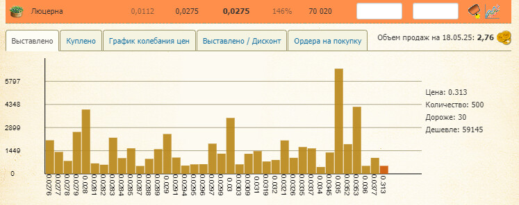 Ок @root тогда сделайте в рамках технической возможности биржевые временные таймфреймы. Что-бы игрок мог видеть желаемый период выставленных лотов.