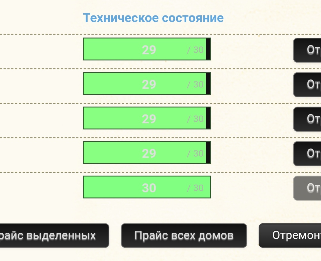 Нельзя ли всё же сделать галочку, чтобы дома чинились как раньше: автоматически, но раз в месяц? По мне лучше один раз потратить на ремонт много, чем каждый день по чуть-чуть. Так как сейчас тоже можно, но раньше было поудобней, потому что было наглядно видно что куда ушло и скольно ресурсов нужно прикупить. И причем все было без этих диких цифр после запятой