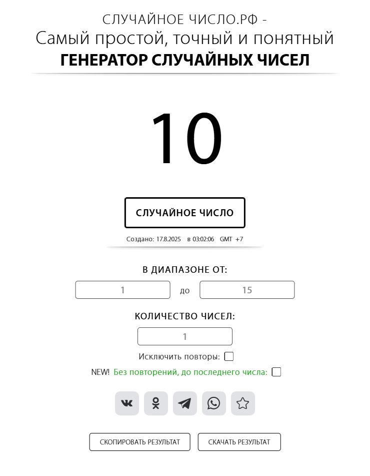 Рандомайзер: https://случайноечисло.рф