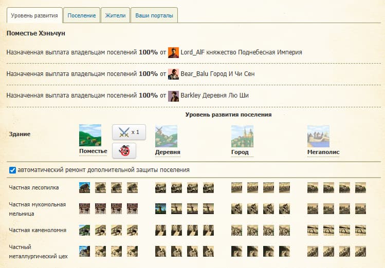 • Ежедневная выплата за поместье ( зависит от уровня развития АЕ )