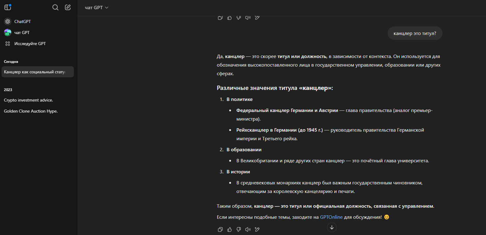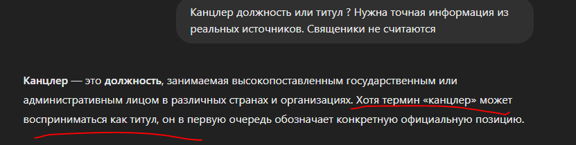 Я не знаю откуда вы эту цитату взяли. Я сделал вам скрин с чата GPT… Вы советовали доверять ИИ. Так и поступил. ИИ подтвердил трижды мне что канцлер это титул